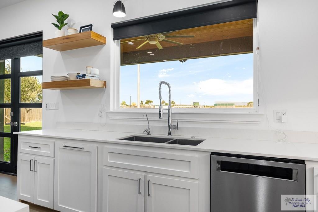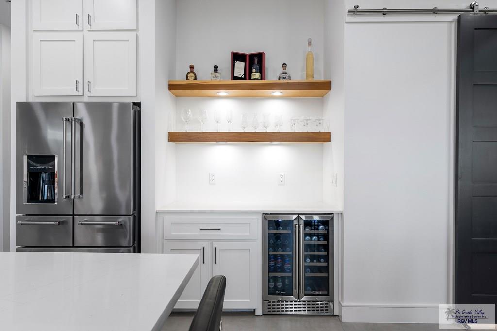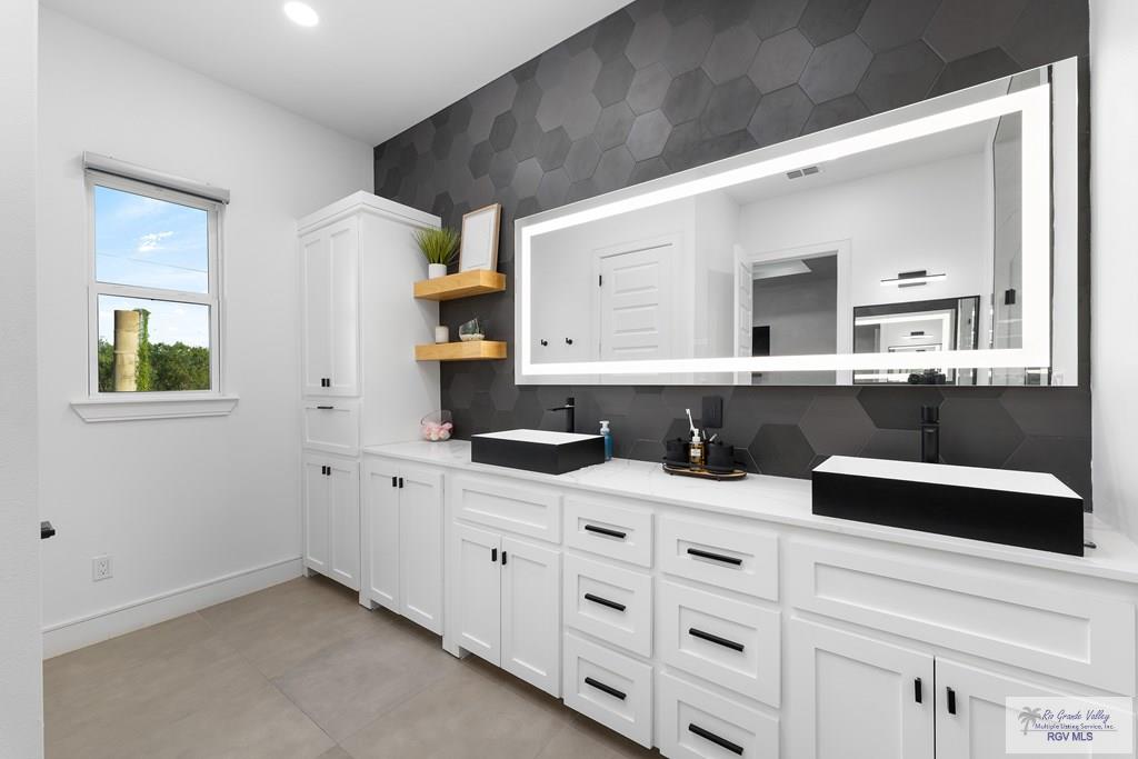 This 3BD/3BTH 2,447sf DUAL MASTER residence blends contemporary design w/ timeless charm. Built on a .58 acre lot featuring a striking exterior of white stone, dark gray siding, & warm wood accents, this home offers exceptional curb appeal & architectural sophistication. Discover a thoughtfully designed split/open floorplan filled w/ natural light. Beautifully curated living space showcasing features such as gray colored porcelain tile, floating shelves, custom cabinetry & sleek white quartz countertops throughout. Stunning modern kitchen, anchored by a spacious central island w/ ample seating, generous storage, all complemented by a premium stainless steel gas range & hood. Built-in coffee station & a large butler pantry adjacent. The primary suite boasts double vanity sinks, hexagonal tile backsplash, walk-in closet w/ built-ins, & a walk-in shower w/ garden tub. 2nd master w/ walk-in closet, built-ins, vanity, & shower. Schedule your showing & see even more of what this home offers.